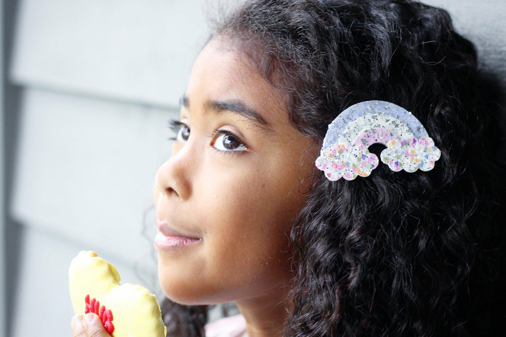 With our trusted and well known no-slip hair clip, these rainbows will stay put all day long, so they can dance, fly, skip, run, or even go looking for the pot of gold- with their hair in tact.
