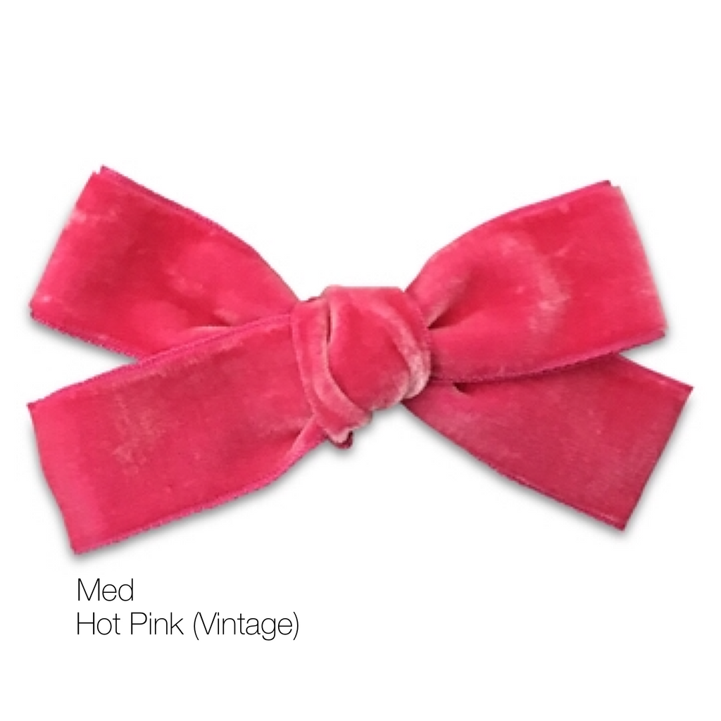 Mary B We started with the baby velvet bows last year in pigtail form and went to medium and large velvets this year. I thought mediums would be the best fit, but there was a gorgeous shade of blue in large that I needed to try...and it's all love.