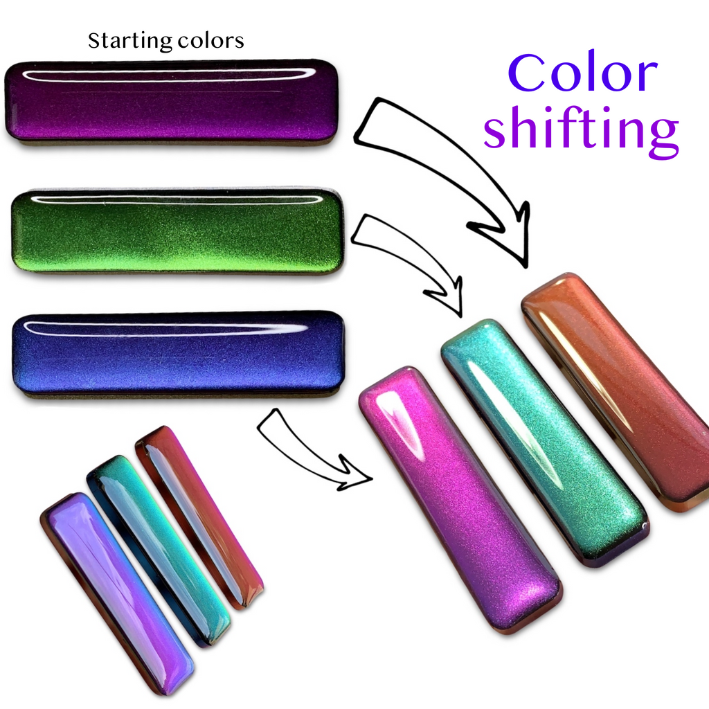 These no slip color shifting resin bar hair clips are amazing and they are great for all ages. The word "bar" refers to the shape of the clip. Each color shifts to a different color when it moves in the light. The colors are perfect for Fall. Color shfiting clips match so many things since there is such a big range of colors in just one clip.