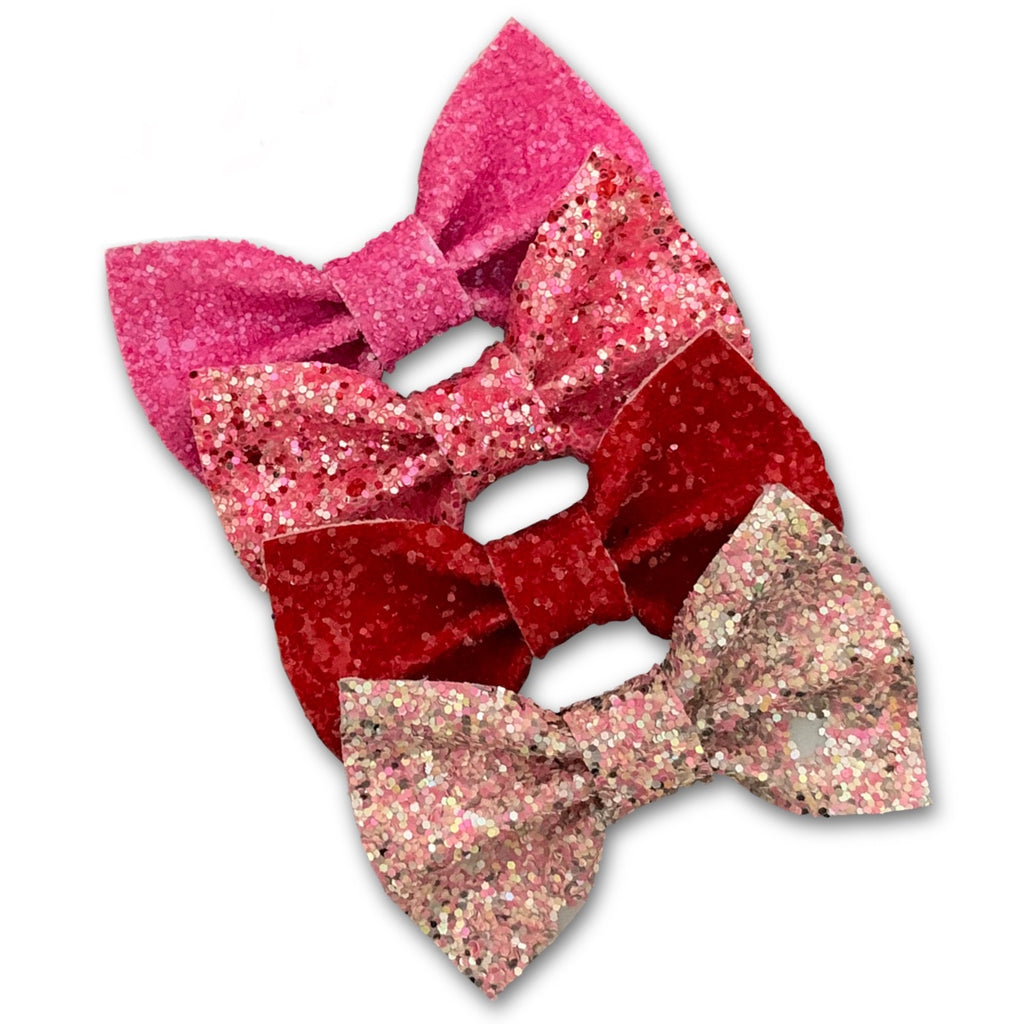 / Valentine Sparkle No-Shed Glitter Basic Bows Hair Clip Accessories for Girls