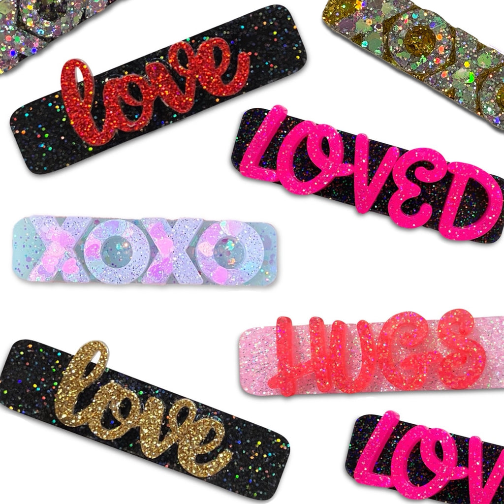 Valentine's Resin Word Bar Hair Clips