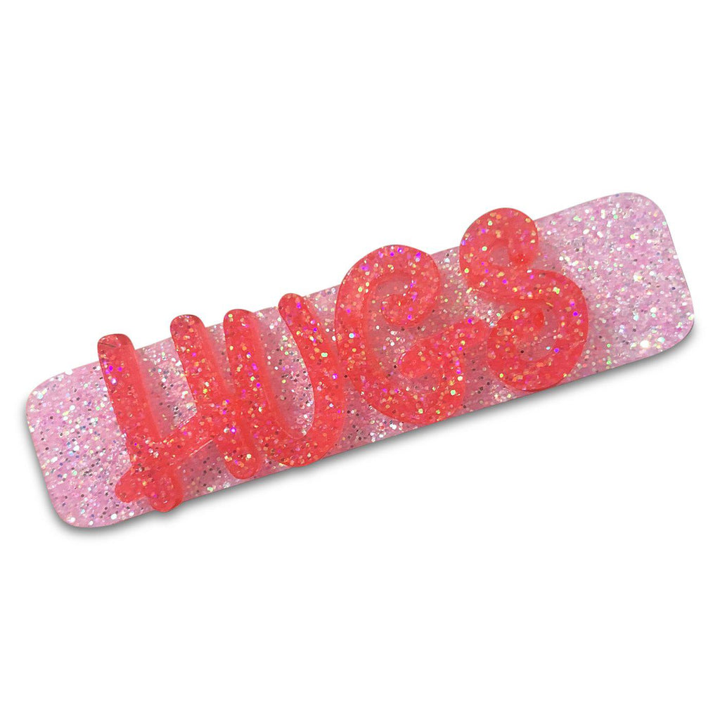 These no slip resin WORD bar hair clips come in some fun Valentine word fun and hopefully more to come. The word "bar" refers to the shape of the clip.