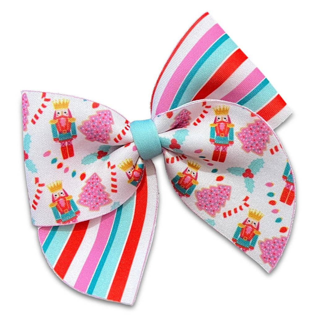 These no slip sailor hair bows are brand new and fabulous. Each bow is made from neoprene fabric which is a polyester and spandex mix. They're soft and lightweight, colorful, and perfect for the holiday season.